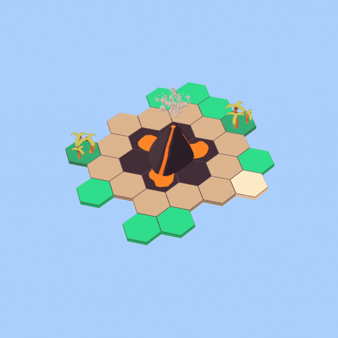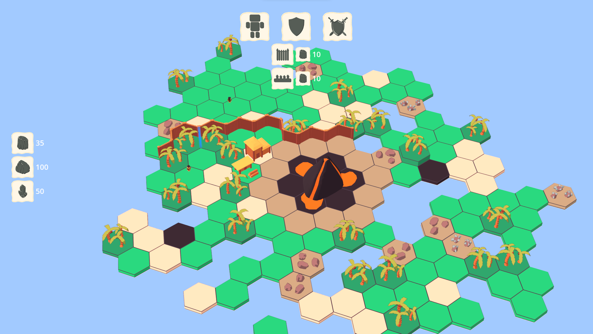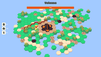 A volcano is a blessing and a curse. In this procedural RTS, the volcano erupts to expand the island and provides you with resources that you will need to assemble houses, resource huts, and defenses. Your tribe is not the only one in this island. When the island gets big enough, other settlers will set up tents, houses, or forts. Once the volcano goes dormant, you better make sure you have defenses set up or they will destroy the volcano.